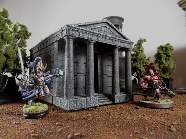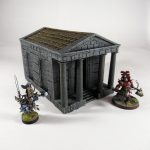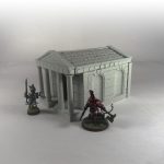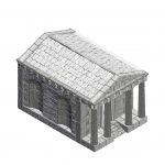 The Graveyard Mausoleum is a multipart model consisting of 11 files to be printed for a total of 16 parts that is provided in the digital file STL format to be printed on a home 3d printer and then assembled and painted. The default scale of the model is 1:50 but this can be rescaled if other sizes are desired.